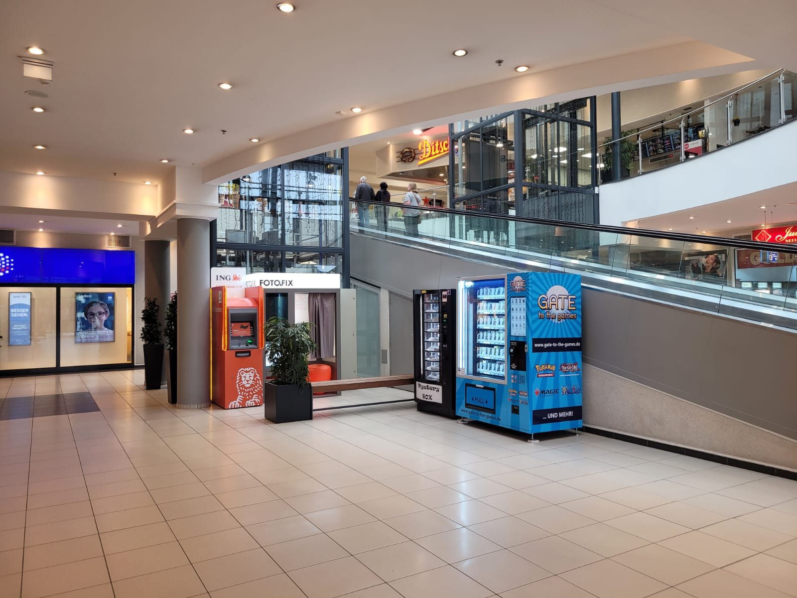 Unser Automat befindet sich im Obergeschoss in Richtung Woolworth/Rewe. Wenn ihr die Rolltreppe nach oben in diese Richtung nehmt, könnt ihr ihn nicht verfehlen.